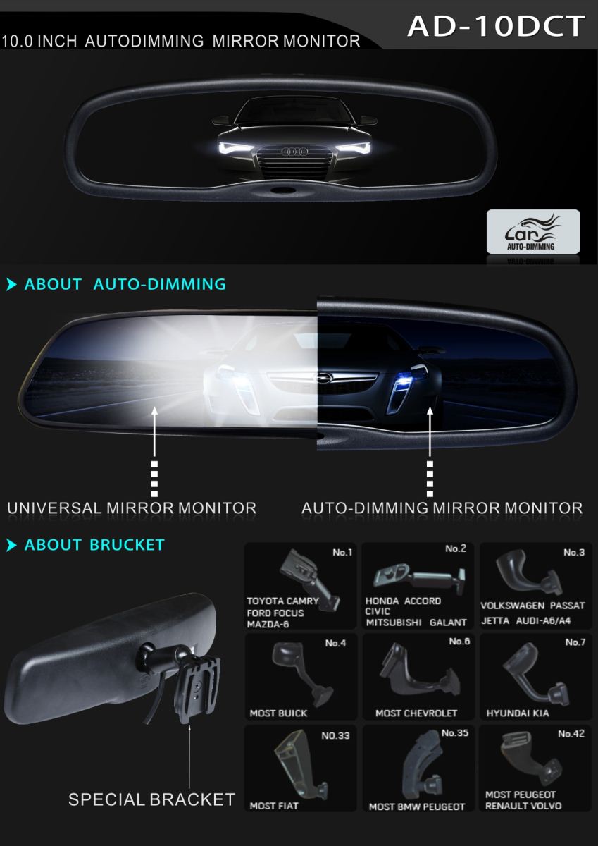 MG-10D10 Inch Auto-Dimming MIRROR10inch auto-dimming rearview mirror monitor.