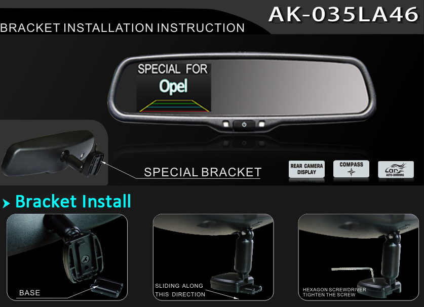 AK035LA46 special bracket rearview mirror monitor for OPEL.easy to install