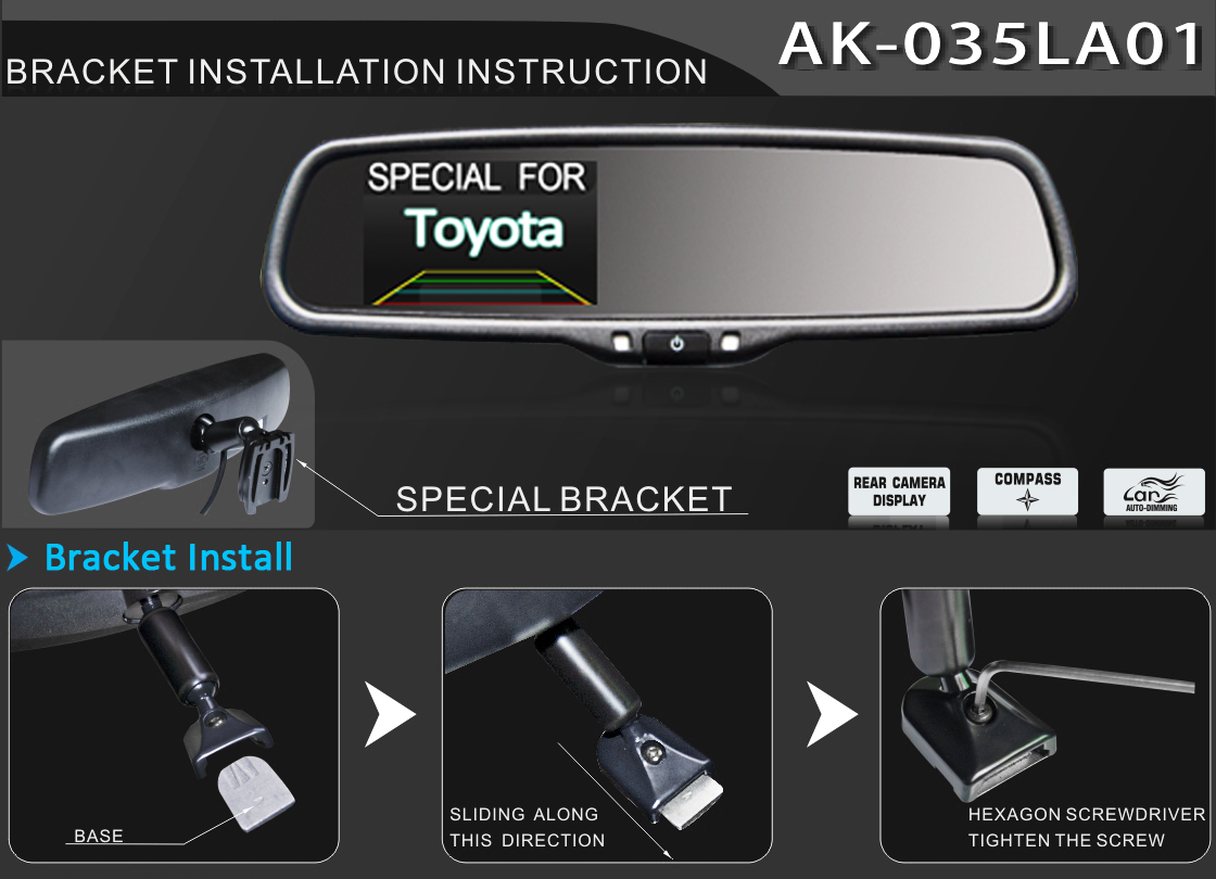 AK035LA01 special bracket rearview mirror monitor for NISSAN,FORD,TOYOTA.easy to install
