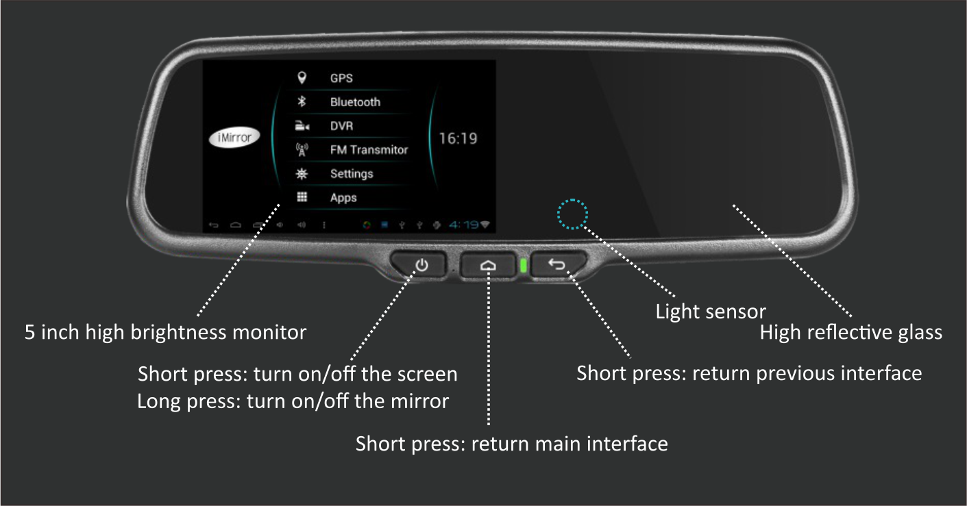 • 5.0寸モニターAndroid システムバックミラー,LN050LA