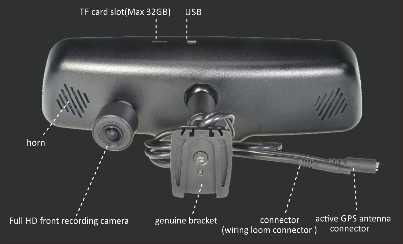 このリアビューミラーは、ハイビジョン録画のカメラを配置して、すべての