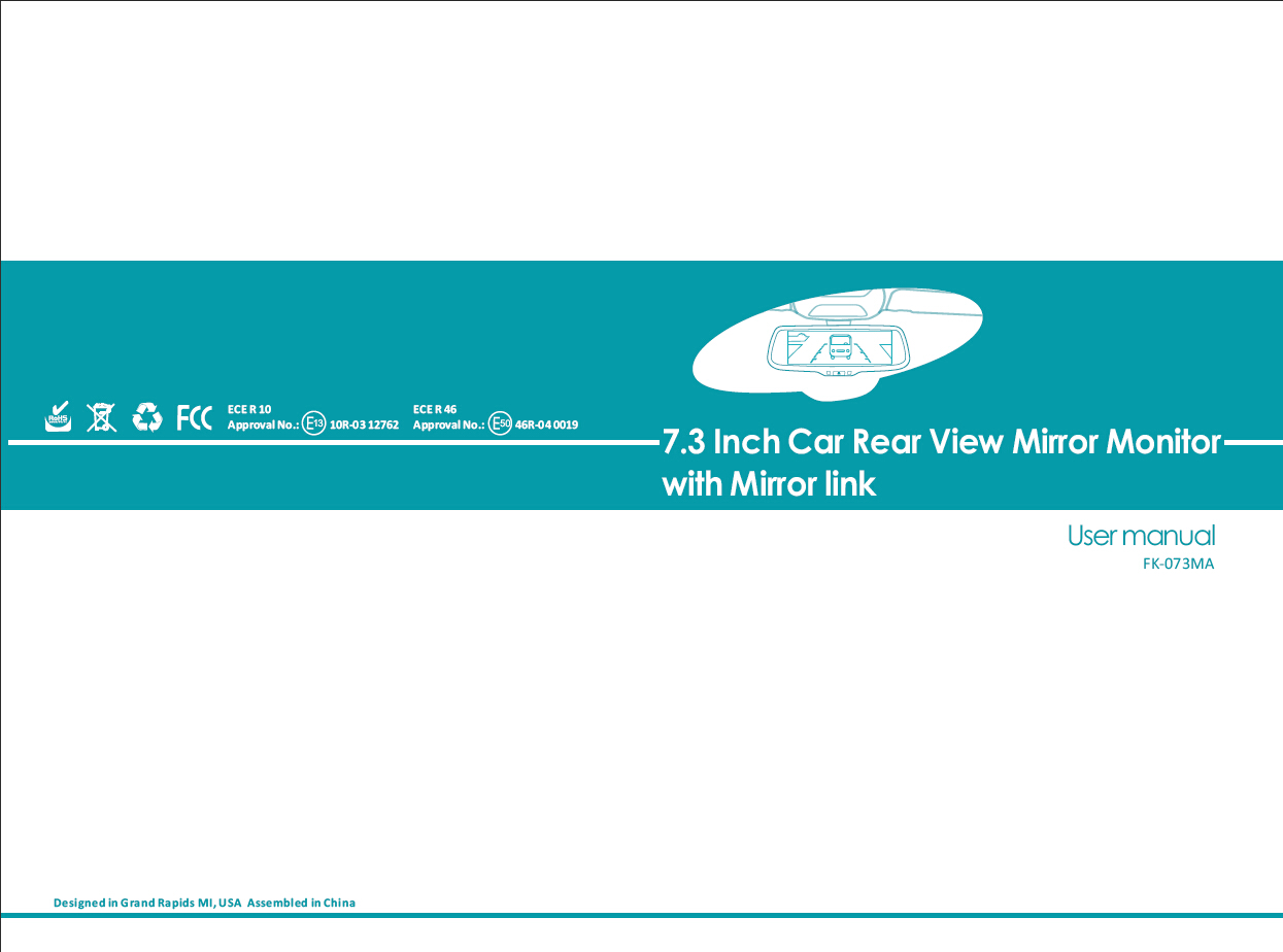 7.3inch ultra high brightbess display rearview mirror with mirrorlink,FK-073LMA+Mirrorlink