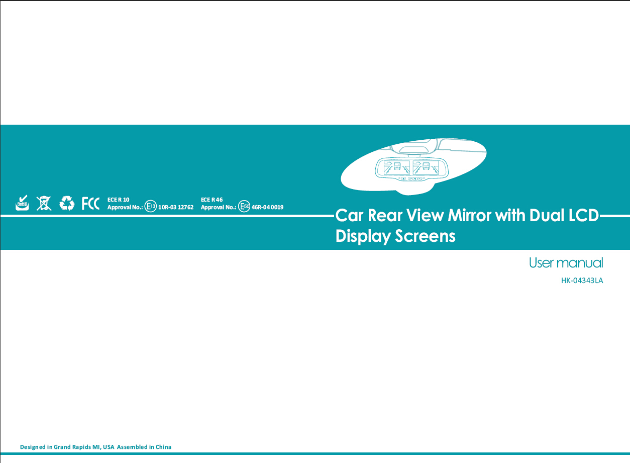 4.3inch Car Rear Viewmirror Dual Display Rearview mirror,HK-04343LA