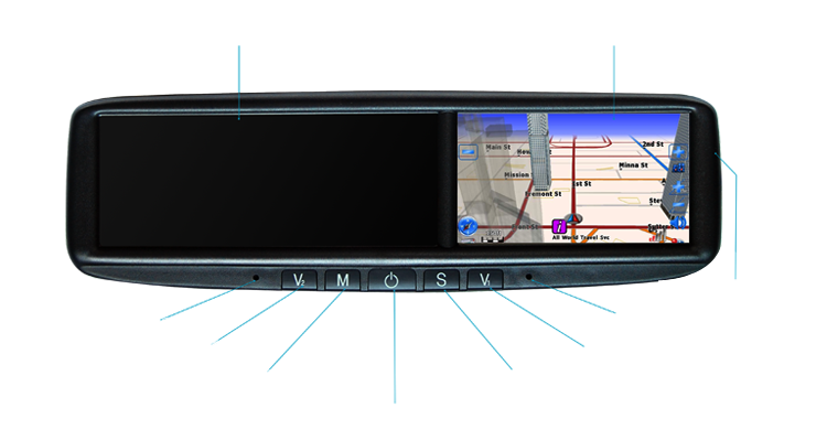 Mondial rétroviseur multimédia est un produit GPS parfaitement combiné avec rétroviseur. il est une meilleure garantie pour la sécurité de votre conduite. lorsque vous chasser. c'est votre partenaire honnête. CM-043RB clipsé sur votre miroir original, il est très facile à installer.