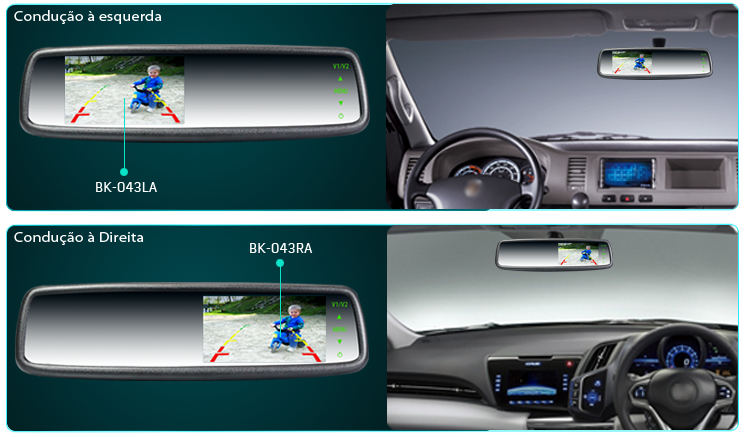 As driving regulation is different in different countries, we developed out two models. Monitor can be built on the left or on the right. BK model also have OEM replacement model and clip on model.