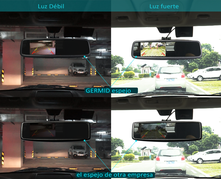 El modelo BK-043LA/B, un tipo de espejo RCD, se diseña especialmente para aparcamiento seguro. Se necesita trabajar con una cámara de reserva para mostrar la vista trasera. Cuando se aplica la marcha atrás del coche, el monitor de alto brillo de 4.3 pulgadas muestra automáticamente la vista trasera. Si está conduciendo bajo diferente luz, el monitor de 4.3 pulgadas se ajusta automáticamente el brillo de la luz ambiental. Entonces usted se sentirá cómodo al tener una vista trasera en diferentes ambientes de luz.